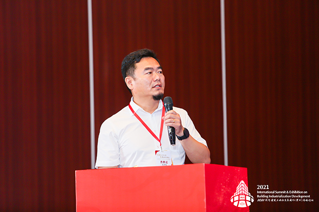 受論壇邀請,中裝建設副總工程師劉豐鈞以《裝配式內裝新工藝、新產品應用推動行業低碳環保可持續發展》為主題做大會報告。